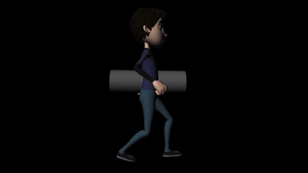I found very useful the website called Bio Motion Lab (www.biomotionlab.ca) because, it gave me a clear idea of how a happy man walking with a heavy object looks like, for example; the knees are open and arms tend to be open as well because, if one arm is carrying an object, the other one is making the balance to compensate the weight.