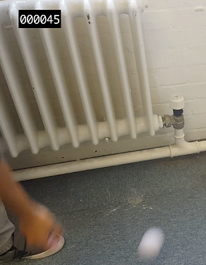 The best way to achieve a realistic bouncing ball is following the frames of a video filmed previously with a ball while it hits the wall and the floor. Therefore, I filmed myself throwing a ball to the wall and edited the video in the After Effect programme. I added on the video filmed a Time Code (frame numbers), which were very helpful because while creating my bouncing ball, I just had to follow the frames on the video where the ball hit the wall and bounced on the floor and mark them on the Key-frames in timeline (Maya).