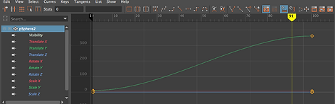 A sphere was placed some centimetres above the "ground" to obtain the effect that the ball will drop on the "ground" and then start bouncing. Therefore, to begin with that effect, I used the Key-frame in the time line (Maya) to mark when the sphere goes up and down pressing the letter S. To obtain a realistic bouncing ball I used the Graph Editor, in which I could see the curves levels that helped to make a precise bouncing putting some curve levels in V-shape.