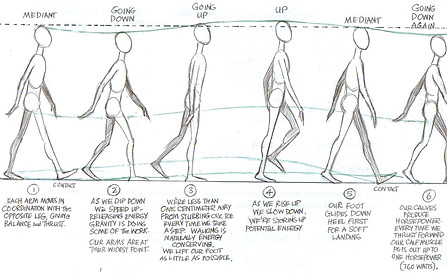 To make a realistic walking, I read some advices in a book called Walk Cycle written by Richard Williams. One of the main advice was to think about female or male walk and also how cartoon exaggerated the walk such as; Disney or Looney Tunes.