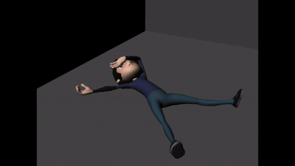 In my final project I used two camera angles, one is from the back while the character is talking through the phone (left) and the other camera angle is from the front when the character stands up, holding the coin and moving the chair (right).