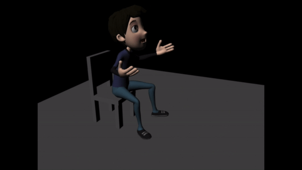 -Front Camera: Eyes, legs movements, lip-syncing, standing up, chair going backwards and head movements.